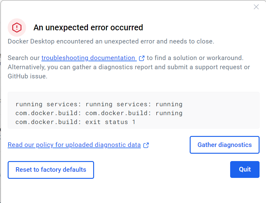 ためしにdocker desktopを起動すると、以下のようなエラー。